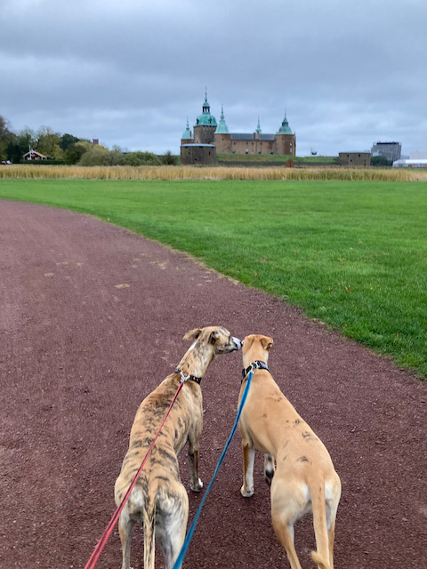 Morgonrunda, lunchrunda och kvällsrunda. Det är vad våra rutiner kretsar kring. Vi har det ofta så att lunchrundan är den korta av dessa och någon av rundorna tar vi någon annanstans. I morse gick vi vid Kalmarsundsparken nästan bort till slottet. Kvällsrundan blev en tur till fårhagen vi Tyska bruket.