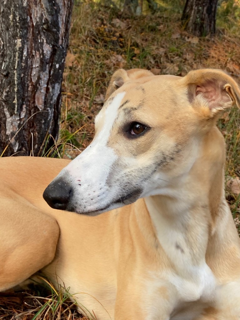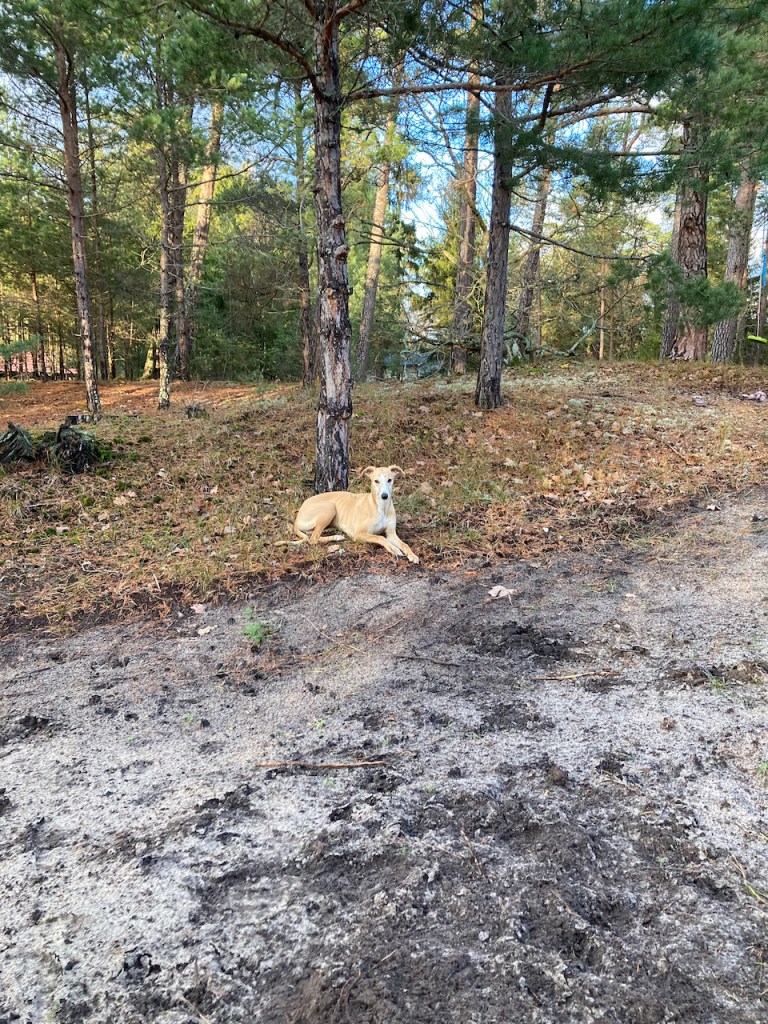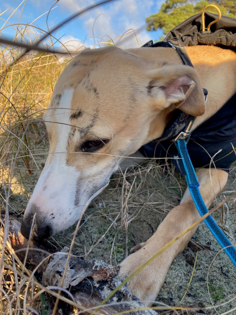 Och likaså på stranden. Där han så nöjd la sig efter att ha busat runt med Otis.
