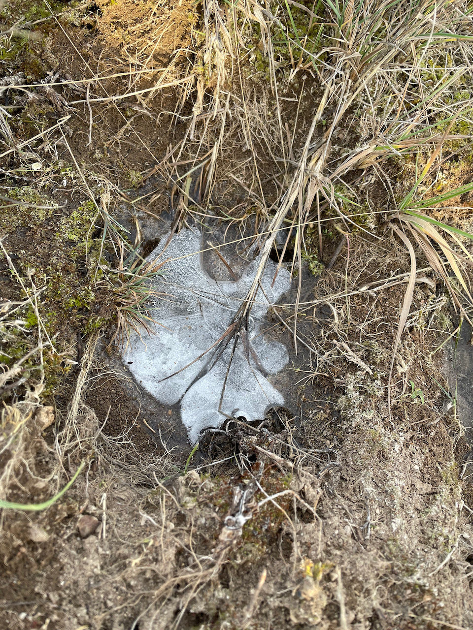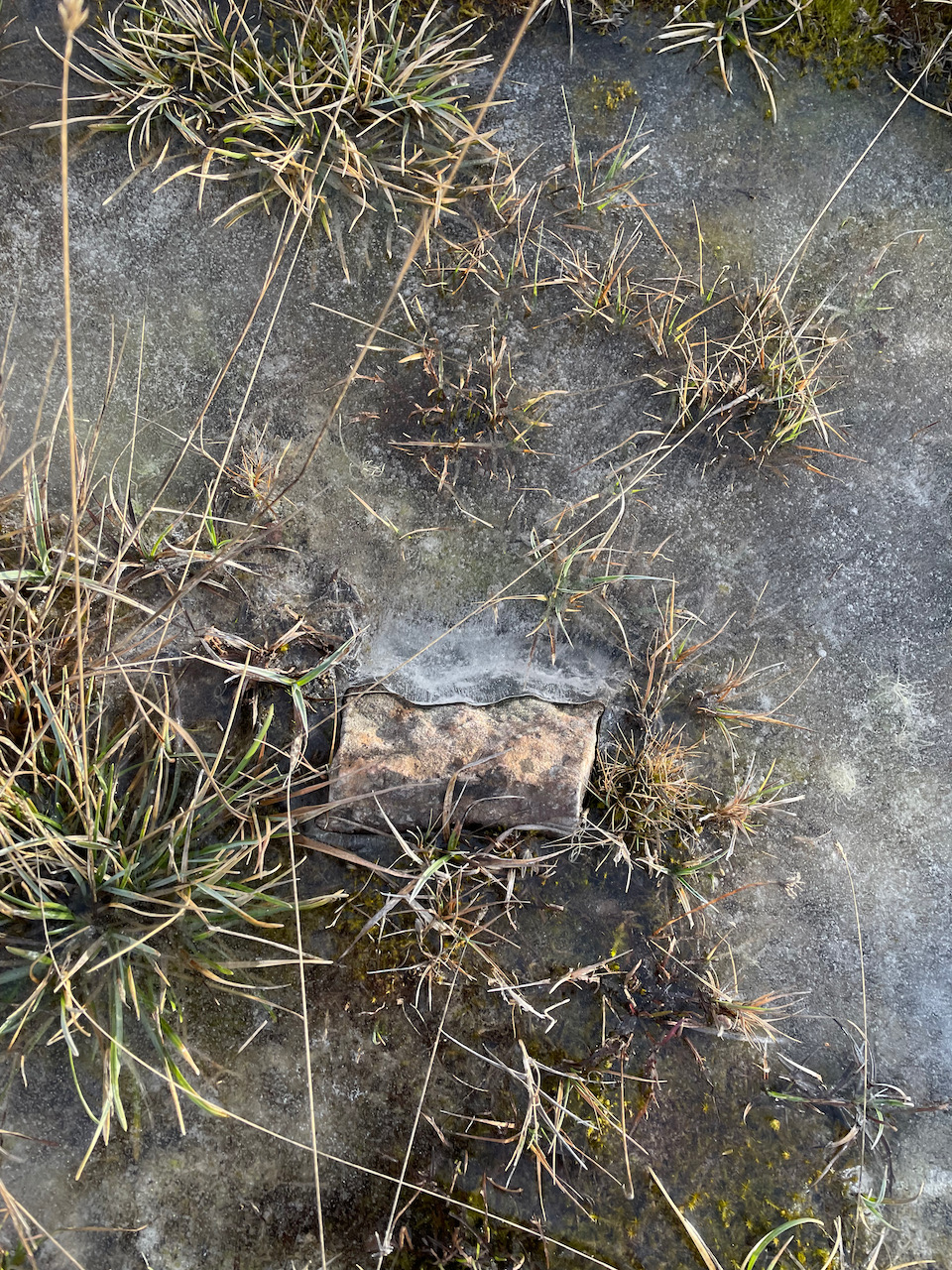 Här kan man ju gå hur långt eller kort som helst för det är bara att ta sikte på kyrkan för att hitta tillbaka. Hänsyn måste tas till att det är djur som betar här vid vissa tider och att det är naturreservat. På våren är det här ett fantastiskt orkidéställe. Nu fascinerades jag av den frusna vilande naturen. Jag hade inga skridskor heller, mina fötter kommer helt enkelt inte alls överens med skridskor, så jag förundrades istället över isen och det torkade landskadet.